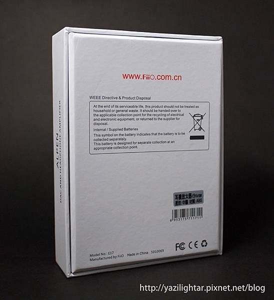 產品背面並沒有多餘的介紹,只有大大的官方網址和產品報廢時的處理方式,產地是世界工廠。